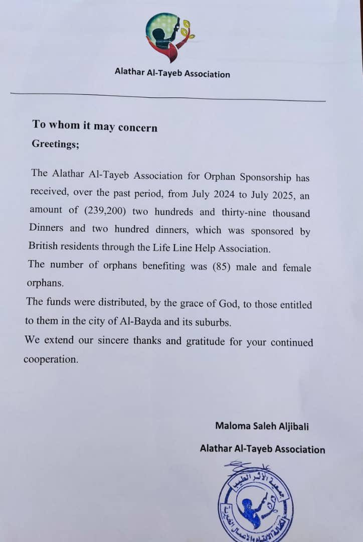 * Provided **40,000 Libyan Dinars** to Tripoli Medical Centre for anaesthetic equipment, strengthening emergency medical services.